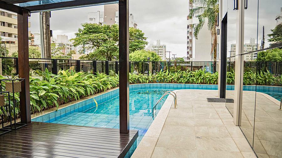 • 03 suítes, 127 m² de área privativa, sacada integrada com a sala e fechamento em reine. Suítes com persianas automatizadas.