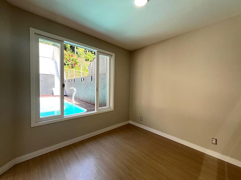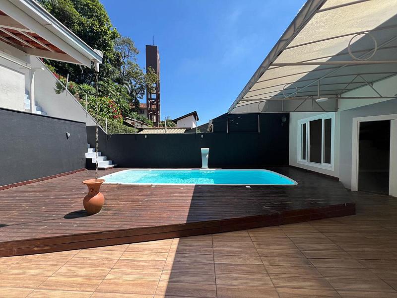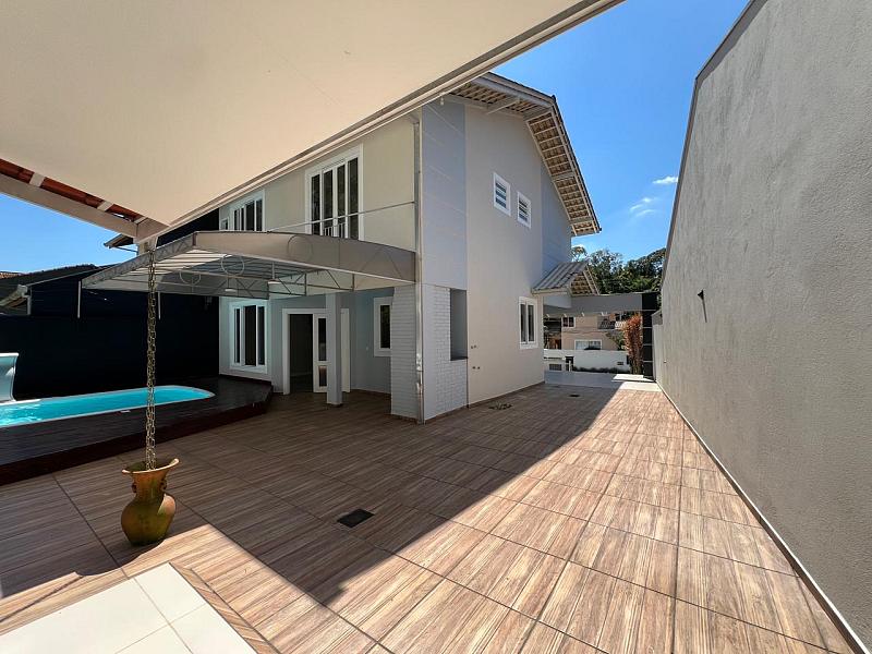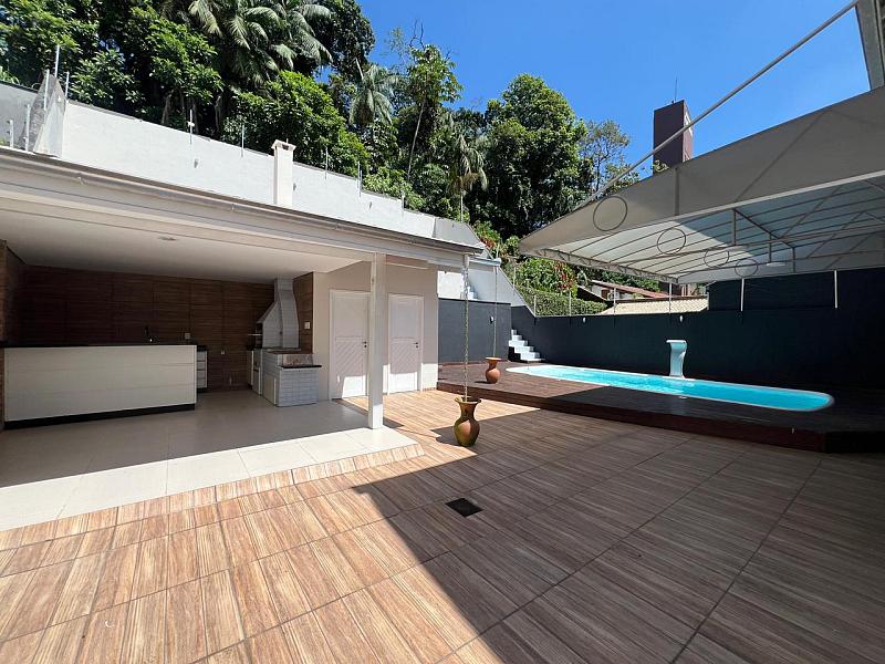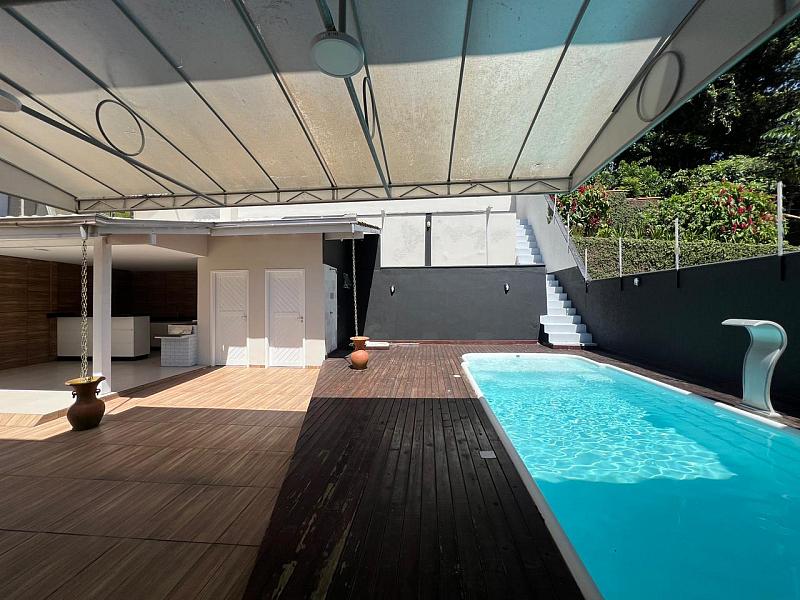 • A casa conta com uma piscina, churrasqueira e área gourmet.