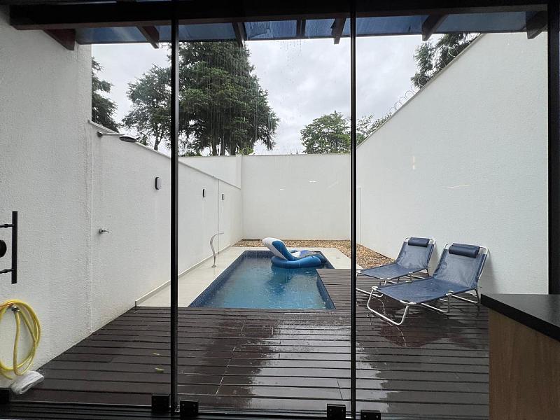 A área de festas conta com um espaço super confortável pra receber a família e amigos, além de uma ótima piscina com vista totoalmente privativa.