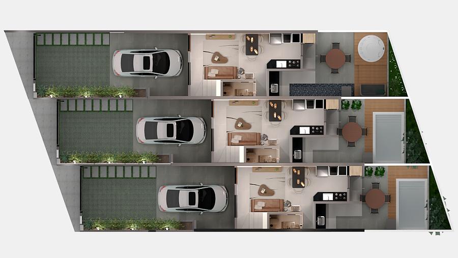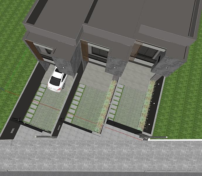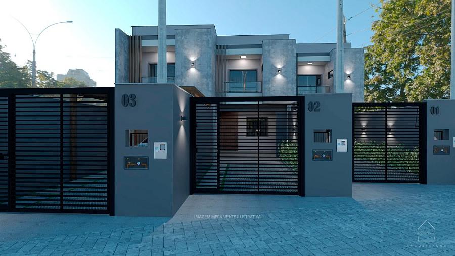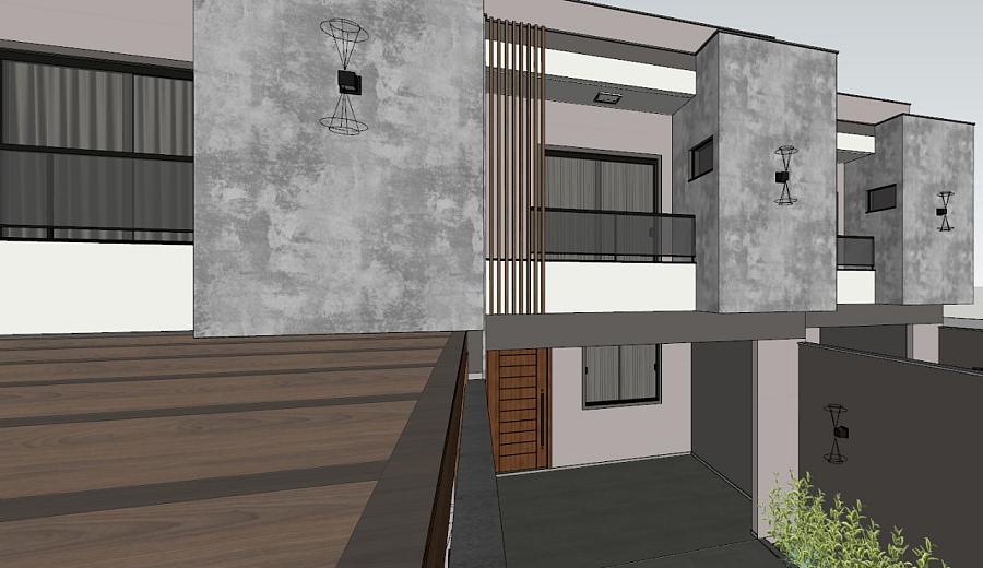• As casas serão entregues com portão eletrônico individual, acabamento em gesso, porcelanato retificado no primeiro e segundo piso, ponto para interfone.