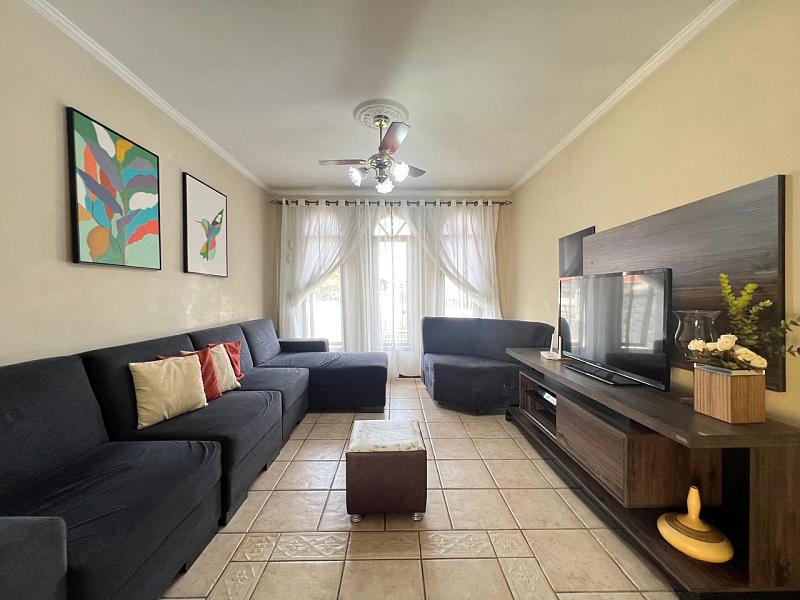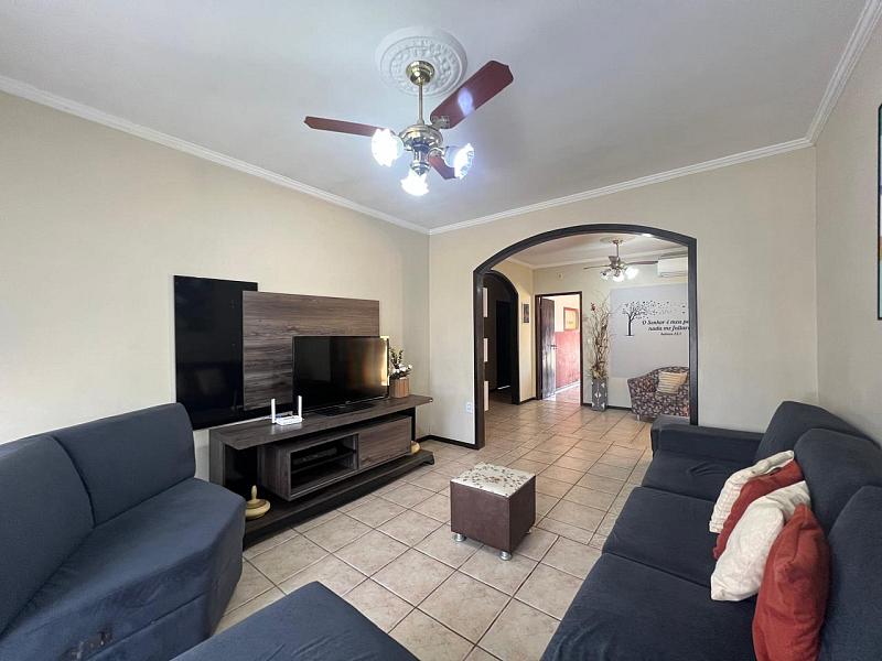 A casa de alvenaria conta com 4 quartos sendo 1suíte, 2 banheiros, sala de estar, sala de tv, cozinha e copa conjugadas e àrea de serviço, são 498m² de área construídas e 500,10m² de terreno.