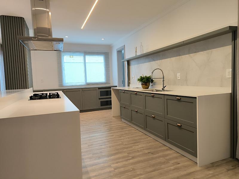 Permanecerá no imóvel todos os móveis planejados, cozinha  (cooktop, micro-ondas e forno). Área externa com churrasqueira, piscina concreto com pastilha.