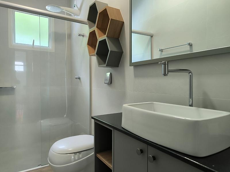 São 05 dormitórios sendo 01 suíte master com sacada e amplo closet, banheiro com 2 cubas e 2 chuveiros.