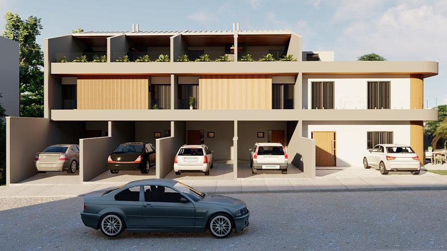 • Casas 01 e 02 sendo triplex com 138 m².